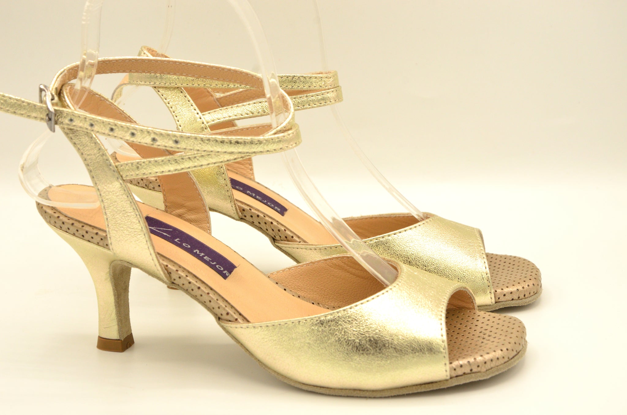 Beautifully crafted handmade tango shoes with leather sole.The model Chicago Tango shoes has the leather sole and 6cm(around 2inch) heel size. Chicago tango shoes have open heels.